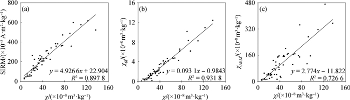 图 3 表土样品典型磁学参数散点图 Fig. 3 Scattergraph of magnetic parameters of the topsoil samples |
