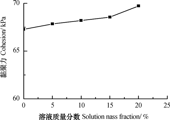 图 1 两种溶液(1:1)作用对黏聚力的影响 Fig. 1 Effects of the mixture of the two solutions (1:1) on cohesion |