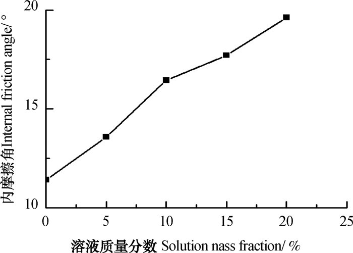 图 2 两种溶液(1:1)作用对内摩擦角的影响 Fig. 2 Effect of the mixture of the two solutions (1:1) on internal friction angle |