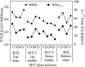 图 5 坡地土壤团聚体稳定性特征 Fig. 5 Features of soil aggregate stability along the slope |