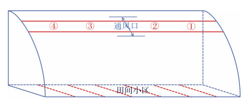 图 2 整棚氨挥发采样点分布示意图 Fig. 2 Schematic diagram of the sampling point of ammonia volatilization in the whole greenhouse |
