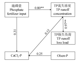 图 5 露天菜地磷流失的结构方程模型路径图 Fig. 5 Structural equation model path diagram of P loss in an open vegetable field |