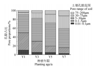图 2 不同种植年限处理土壤孔隙组成 Fig. 2 Soil pore composition in different planting years |