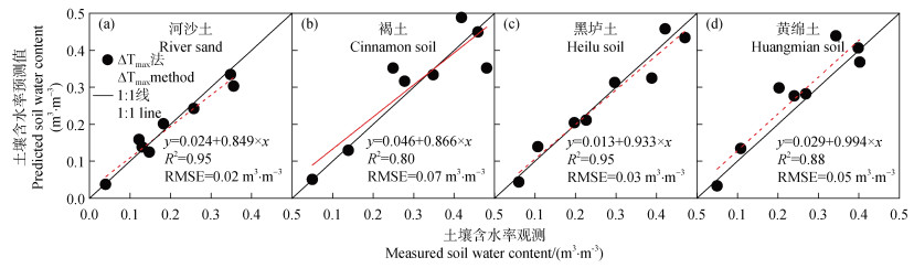 图 5 ΔTmax_FO法的含水率测量精度 Fig. 5 Soil water content measurement accuracy of ΔTmax_FO method |