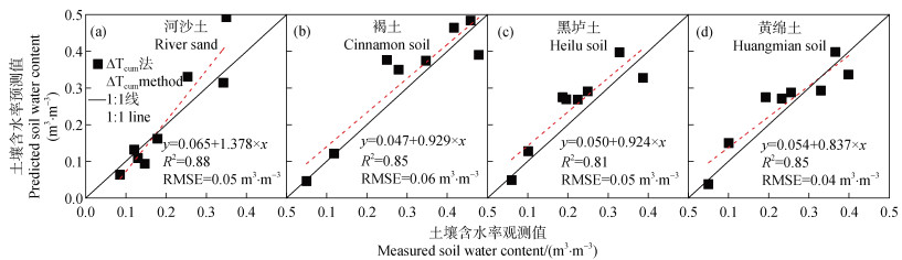 图 6 ΔTcum_FO法的含水率测量精度 Fig. 6 Soil water content measurement accuracy of ΔTcum_FO method |