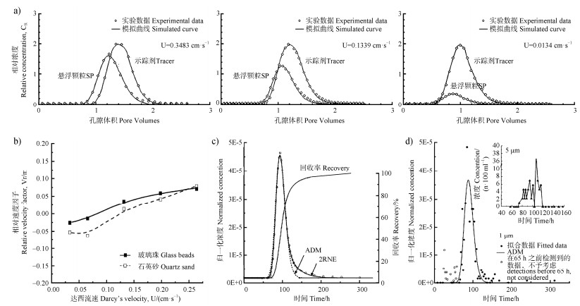 在多孔介质中,胶体因受到对流和弥散作用而发生运移,同时由于表面沉积和筛滤作用等而滞留在多孔介质中。一般而言,研究人员通常采用简化的柱迁移试验,并在特定环境化学条件下来研究胶体的运移规律,基于连续性原理(即质量守恒定律或胶体颗粒数/体积平衡),采用含有滞留项的对流-弥散方程来对其运移行为进行描述[72]。