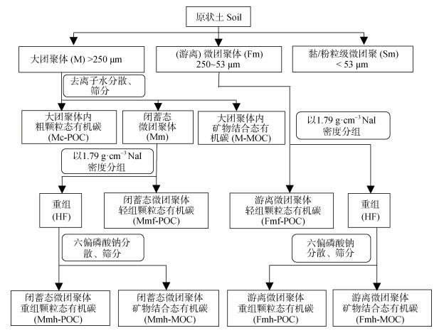 图 1 团聚体有机碳分组流程图 Fig. 1 Fractionation scheme to soil organic carbon in aggregates |