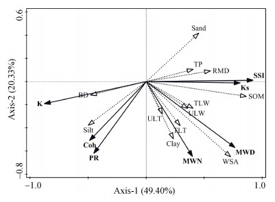 图 4 抗蚀性能与其影响因素的冗余分析 Fig. 4 Redundancy analysis(RDA)between soil erosion resistance and its influencing factors |