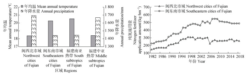 图 5 福建省气候条件及农用纯氮施用量 Fig. 5 Climate and agricultural nitrogen fertilizer application amount in Fujian Province |