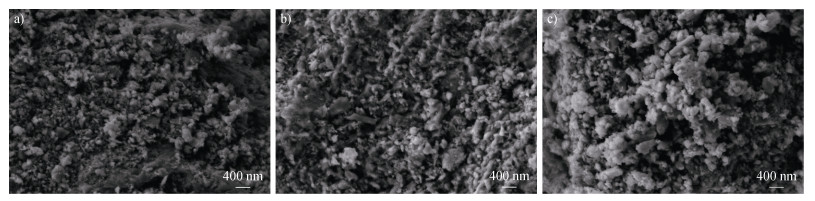 图 6 初始γ-MnO2(a)以及pH 7.0和空气氛围条件下γ-MnO2(1.0 g∙L–1)单一体系(b),SP(0.25 g∙L–1)与γ-MnO2(1.0 g∙L–1)混合体系(c)反应60 h后固相产物的扫描电镜图(SEM) Fig. 6 Scanning electron microscope (SEM) images of the pristine γ-MnO2 (a) and solid products formed in the reaction system of γ-MnO2 (1.0 g∙L–1) (b), and SP (0.25 g∙L–1) + γ-MnO2 (1.0 g∙L–1) (c) at pH 7.0 after 60 h in air atmosphere |