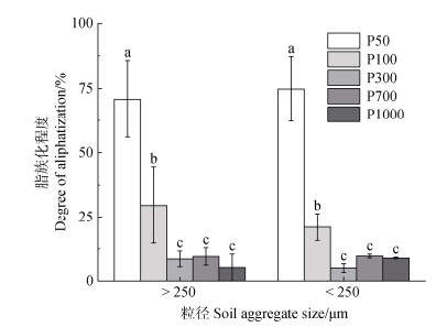 图 3 不同粒径团聚体脂族化程度随植稻年限的变化 Fig. 3 Changes in aliphatization of different size aggregates with rice cultivation ages |