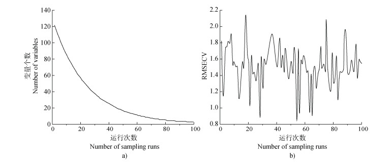 图 3 原始光谱CARS的降维结果 Fig. 3 Results of the original spectral by CARS downscaling |