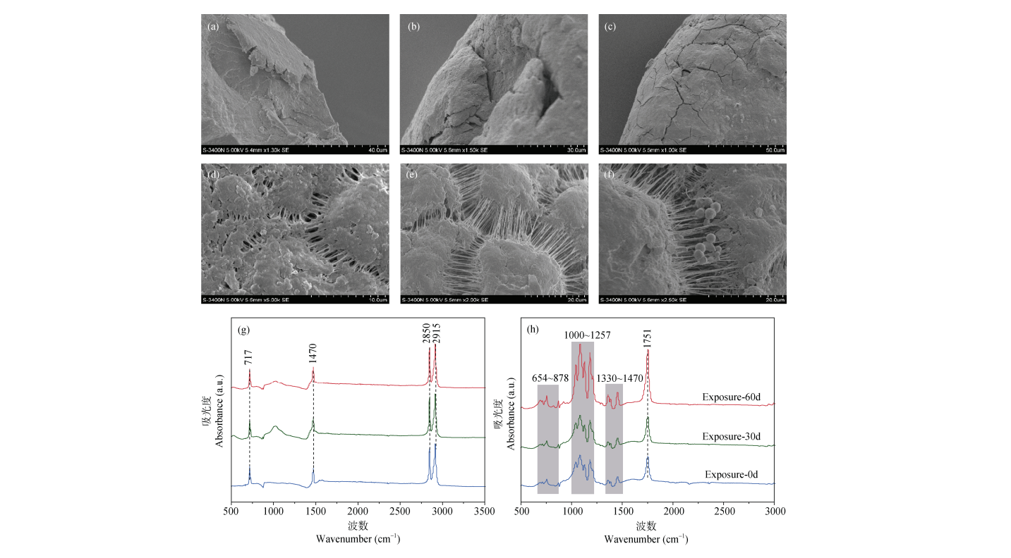【Objective】The ecotoxicity of microplastics (MPs) to soil fauna is widely recognized. However, the degree of MP aging under different exposure durations, their differential toxic effects on soil fauna, and the dynamics of toxicity changes remain poorly understood.【Methods】In our study, microcosm experiments were conducted to compare both the aging degree of polyethylene (PE-MP) and polylactic acid microplastics (PLA-MP) exposed for 30/60 days and their ecotoxicities to earthworms. 【Result】The characteristic peak intensity of both aged PE-MP and PLA-MP exhibited significant alterations at 717 cm-1 and within the 1 000-1 257 cm-1 range. The carbonyl index (CI) of PE-MP and PLA-MP increased from 0.26 to 0.72 and 3.23 to 3.35, respectively. Also, scanning electron microscopy (SEM) demonstrated visible surface cracks and fractures, confirming aging on both MPs. Aging significantly enhanced the toxicity of MP on earthworms and the redox balance of earthworms was disrupted when exposed to both PE-MP and PLA-MP. This was associated with fluctuations in reactive oxygen species (ROS) and oxidative stress. After 60 days of exposure, the concentration of malondialdehyde (MDA) increased by 36.22% and 11.47%, while glutathione-S-transferase (GST) increased by 107.32% and 33.44% in PE-MP and PLA-MP treatments, respectively. In addition, the activities of superoxide dismutase (SOD), peroxidase (POD), and catalase (CAT) decreased by 27.07% & 30.62%, 24.78% & 55.51%, and 52.90% & 47.78%, respectively. SEM and histopathological analyses revealed more severe damage to the epidermis and intestinal tissues in PLA-MP-exposed earthworms than those of PE-MP. Intestinal MP bioaccumulation significantly increased from 2.50±0.28 μg·mg-1 to 6.17±0.13 μg·mg-1 with prolonged exposure, ultimately causing irreversible physiological impairment. 【Conclusion】The aging of PE-MP and PLA-MP in soil induced significant physiological damage and oxidative stress in Eisenia fetida. Notably, PLA-MP shows greater susceptibility to aging and induces stronger physiological toxicity compared to PE-MP.